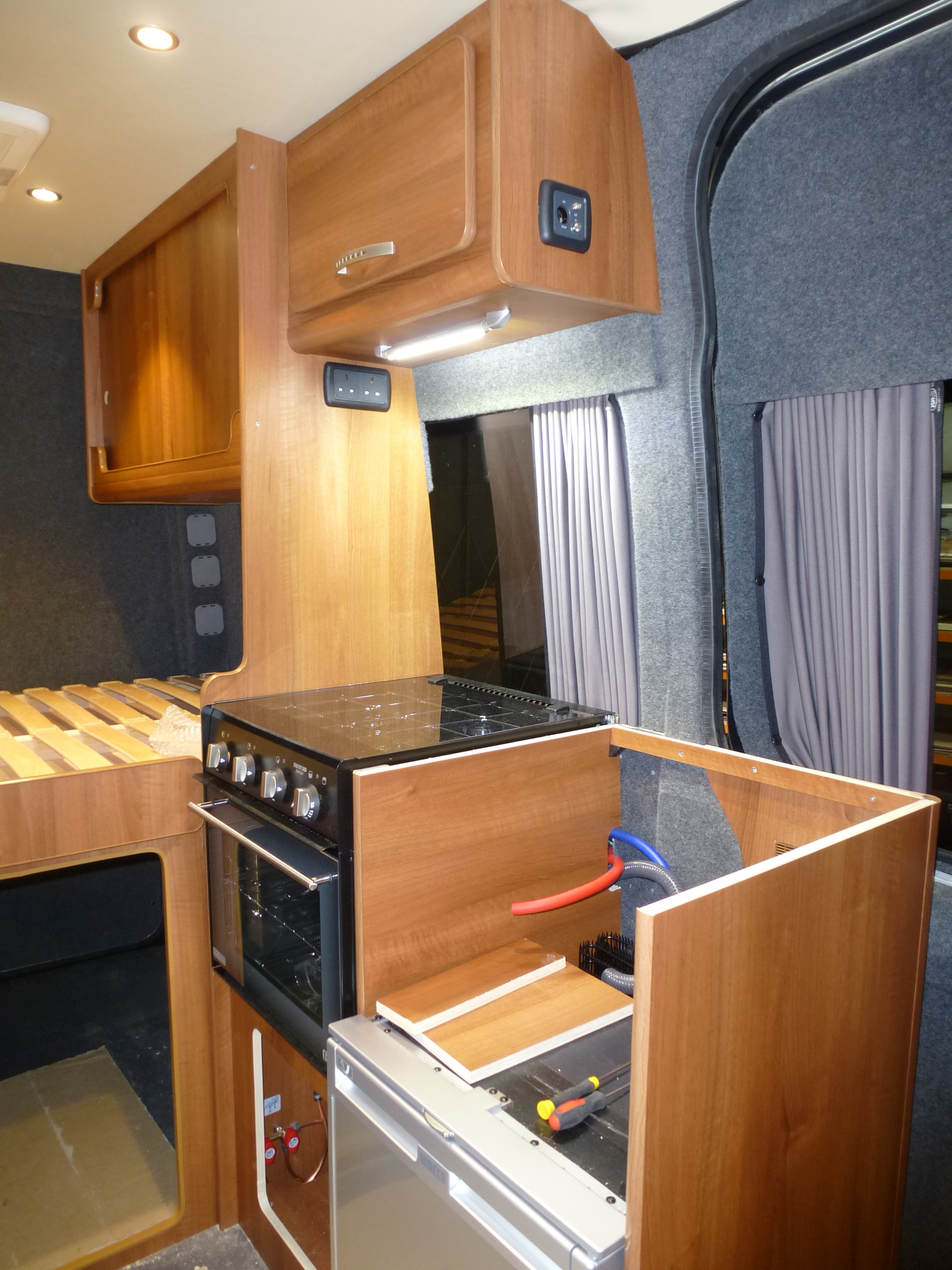 The installation of bonded darkened glass windows and the installation of a 30-litre underslung lpg gas cylinder were carried out and certified by specialist providers.